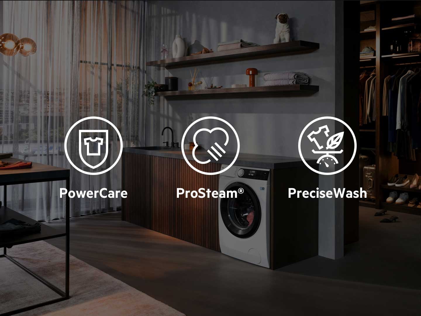 • PowerCare - Efficiënte vlekverwijdering in 59 min, zelfs bij lagere temperaturen dankzij volledige wasmiddelactivering.