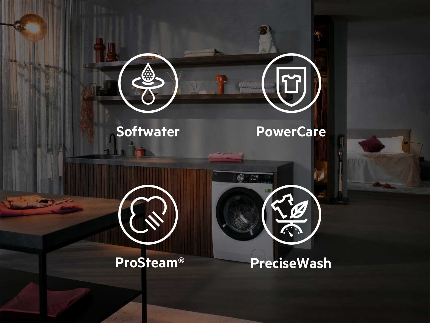 • PreciseWash - Efficiënte wasverzorging door tijd, energieverbruik en waterhoeveelheid automatisch aan te passen bij elke lading.