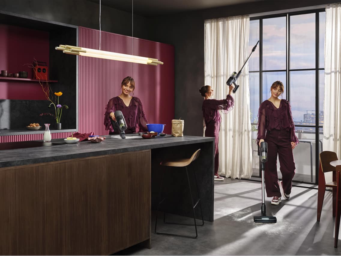 ³ Gebruikstijd gemeten in de modus met hoge snelheid. Stofopname getest volgens IEC 62885-2, rekening houdend met het gemiddelde stofopnameresultaat van 5.2, 5.3 (beide richtingen) op harde vloeren. De resultaten zijn gebaseerd op een vergelijking met de zes best verkochte steelstofzuigers met een prijs van meer dan EUR 490 in vier Europese landen (oktober 2024 tot september 2025).