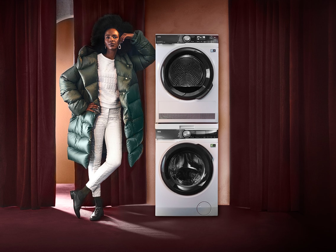 Geniet van stijlvolle designsymmetrie en aanvullende verzorgingstechnologieën als je je wasmachine combineert met de bijpassende droger.