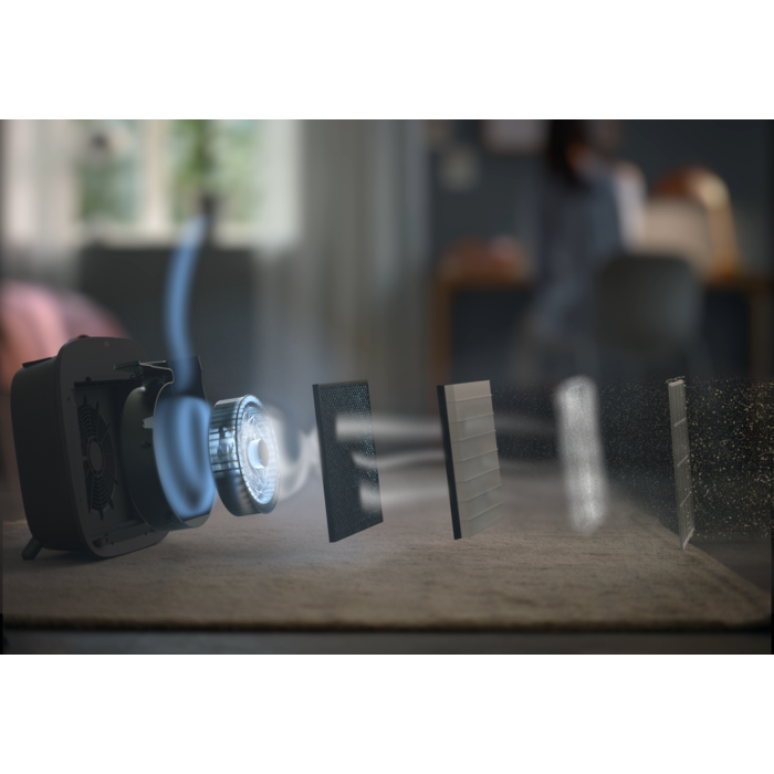 Het unieke voorgeladen fijne filtermateriaal biedt een zeer effectieve barrière tegen microscopische deeltjes, waarbij 99,5% van de deeltjes zo klein als 0,3 micron wordt gevangen.