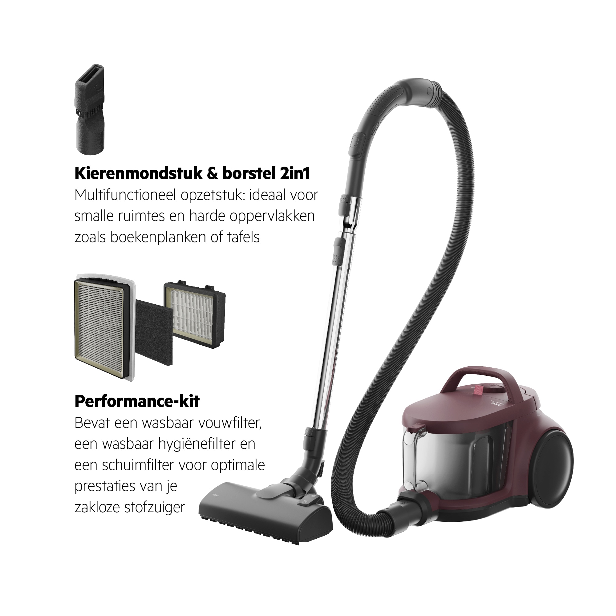 Sterke zuigkracht om stof en vuil van alle oppervlakken te verwijderen.