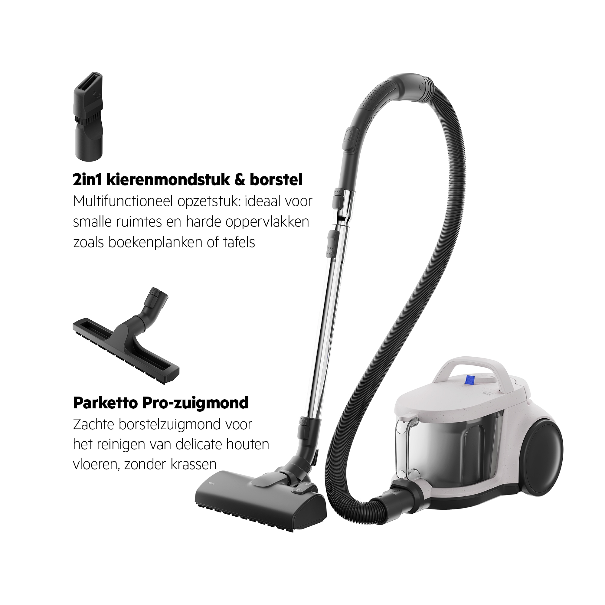 Sterke zuigkracht om stof en vuil van alle oppervlakken te verwijderen.