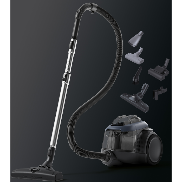 De ergonomisch vormgegeven AEG ANIMAL 6000 stofzuiger zonder zak, met geavanceerde cycloontechnologie, combineert topprestaties, uiterst precies leegmaken en respect voor het milieu (50% gerecycled kunststof). Geleverd met een kit voor het verwijderen van haren van huisdieren uit bekledingen.