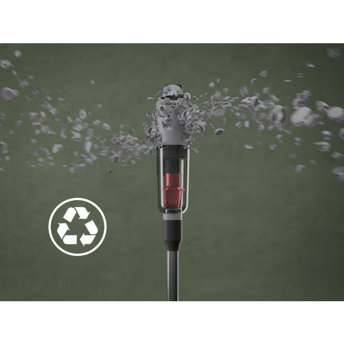 Deze AEG snoerloze steelstofzuiger is één van onze meest efficiënte stofzuigers en bespaart tot 47% energie* terwijl de werktijd wordt verlengd met de Auto modus. De stofzuiger, zuigmond en oplaadstandaard zijn gemaakt van tot 60% gerecycled plastic.** De AEG EcoLine snoerloze steelstofzuigers zijn geselecteerd op basis van de Auto modus-functie die consumenten kan helpen energie te besparen tijdens het gebruik.