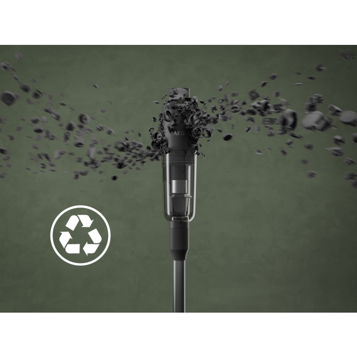 Deze AEG snoerloze steelstofzuiger is één van onze meest efficiënte stofzuigers en bespaart tot 47% energie* terwijl de werktijd wordt verlengd met de Auto modus. De stofzuiger, zuigmond en oplaadstandaard zijn gemaakt van tot 60% gerecycled plastic.** De AEG EcoLine snoerloze steelstofzuigers zijn geselecteerd op basis van de Auto modus-functie die consumenten kan helpen energie te besparen tijdens het gebruik.