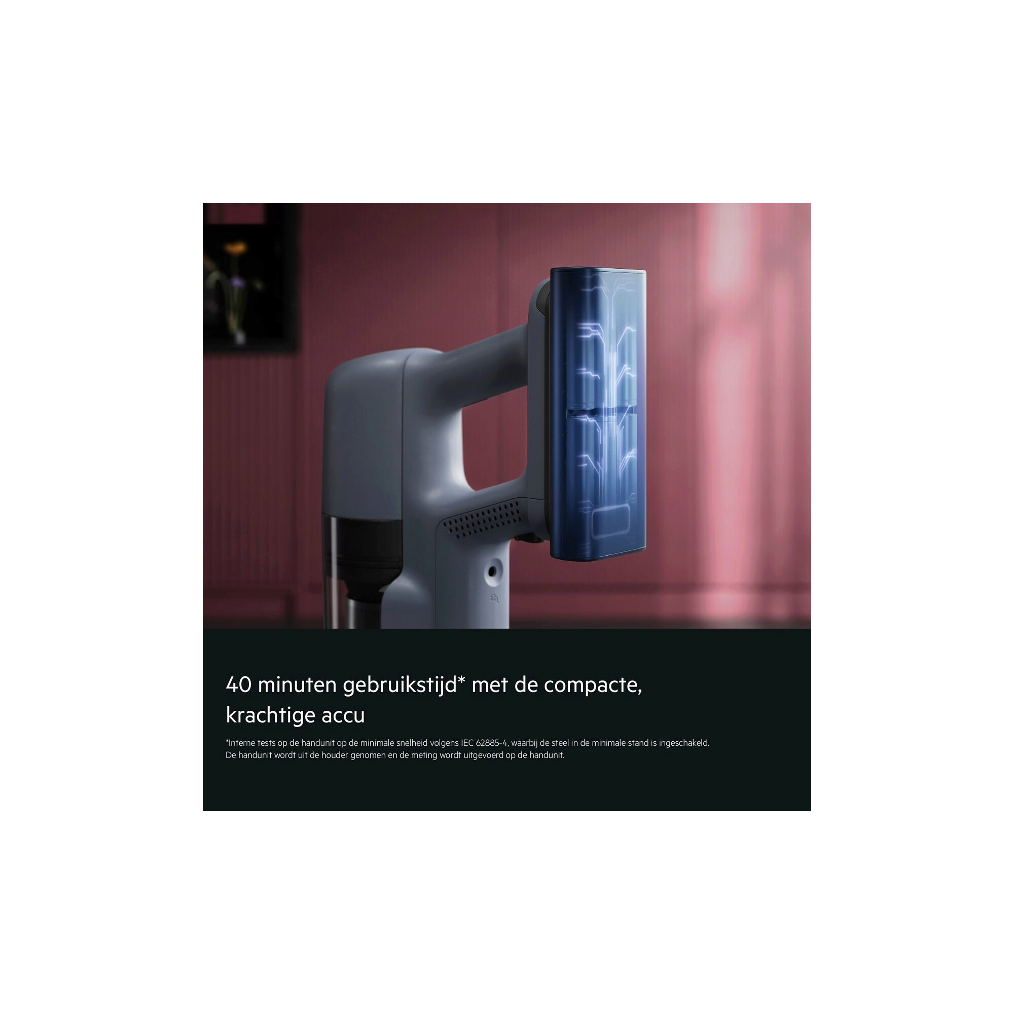 *In vergelijking met de gebruiksduur in Boost-modus. **Gebaseerd op interne tests volgens IEC 62885-4, gemeten in de minimumstand bij gebruik van de handunit en volledige stofzuiger. ***Reinigingsbereik gebaseerd op interne test met dubbele beweging per oppervlak bij 0,5 m/s.