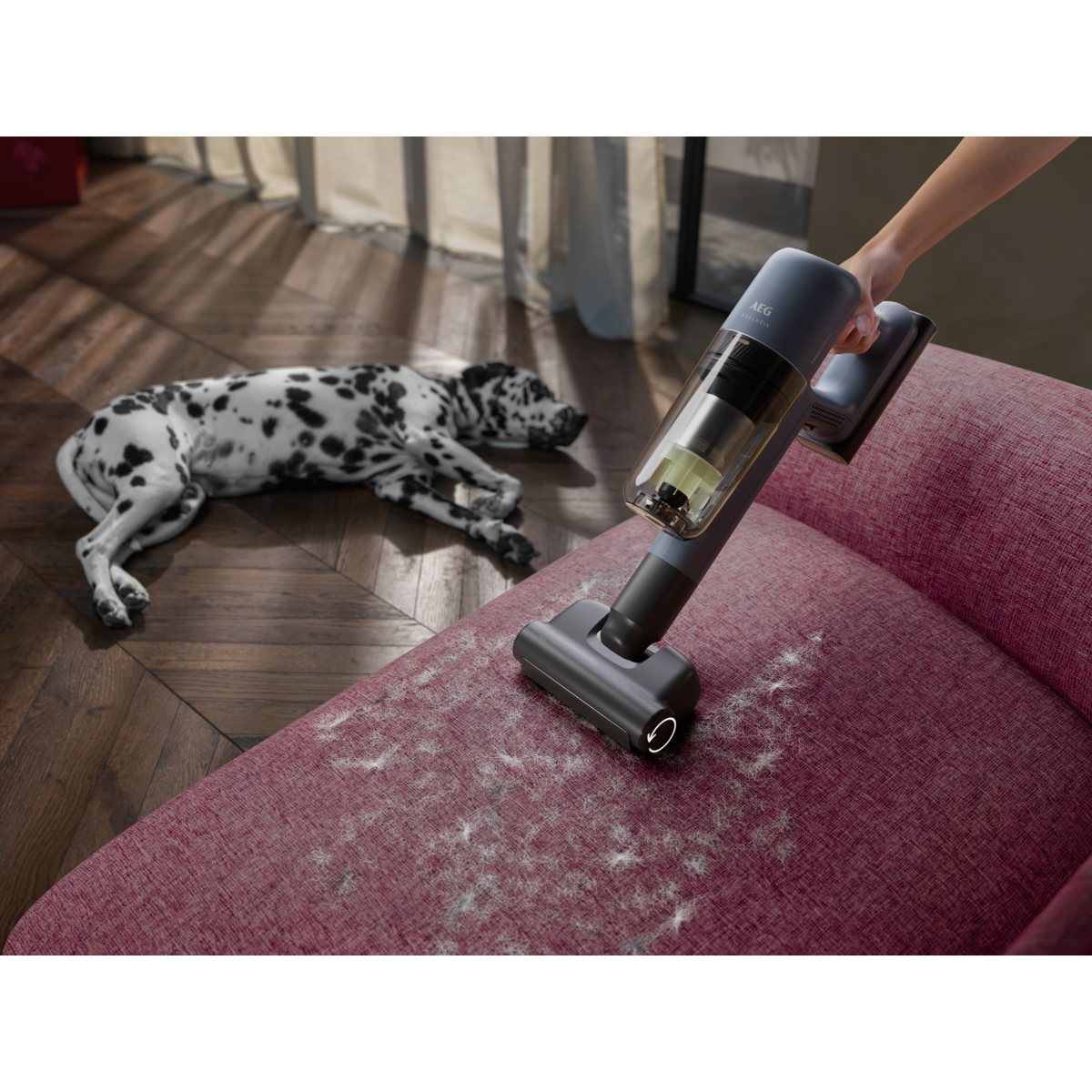 De borstel en rubberen strips in het Pet+-mondstuk verwijderen haren van stoffering en textiel, inclusief autostoelen. Het reinigt diep in de bekleding en pakt zelfs het meest hardnekkige dierenhaar aan. Haren en vezels verwijder je eenvoudig uit de borstelrol dankzij het slimme ontgrendelsysteem.