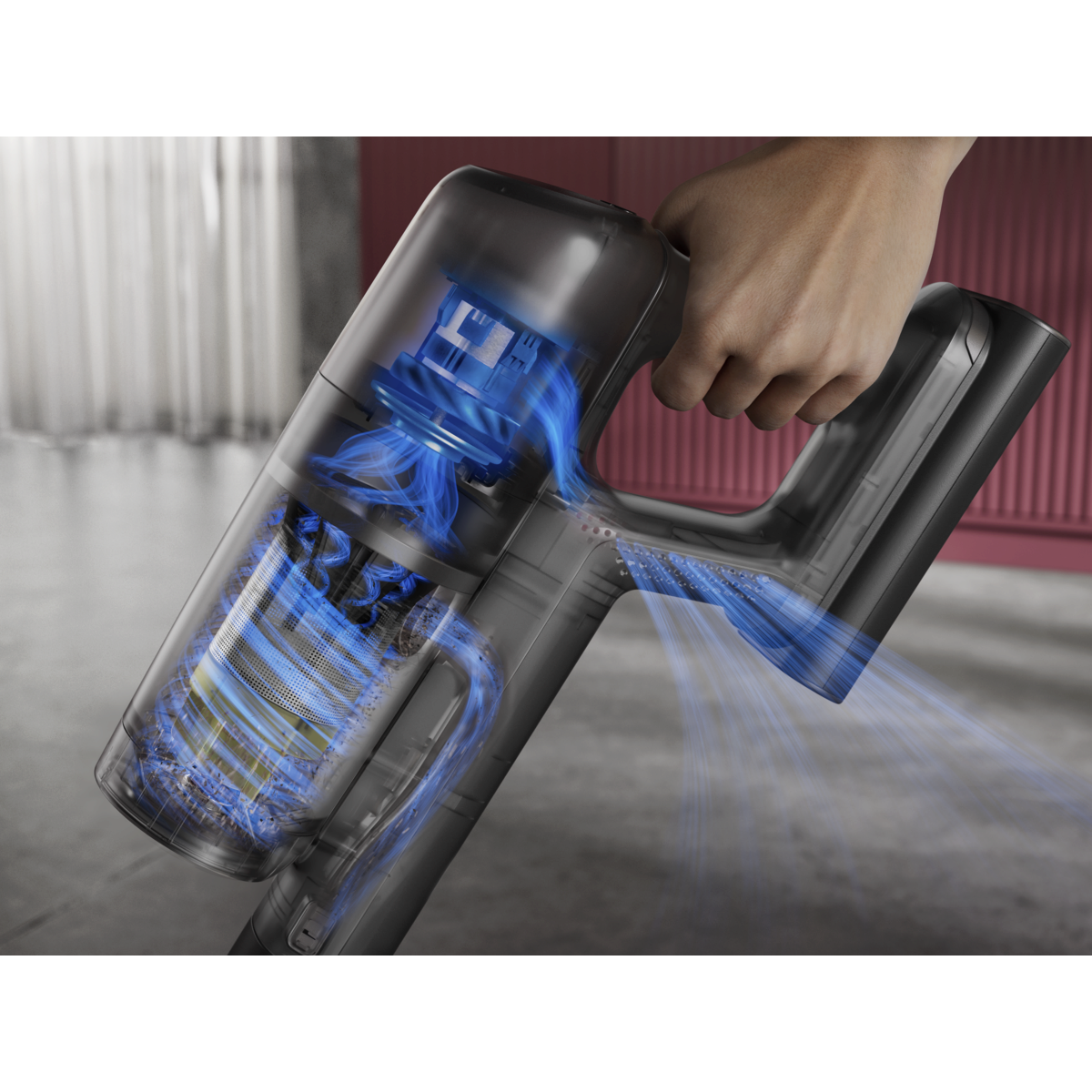*In vergelijking met een enkele cycloonmotor in snoerloze stofzuigers. **Gebaseerd op een interne test volgens IEC 62885-4