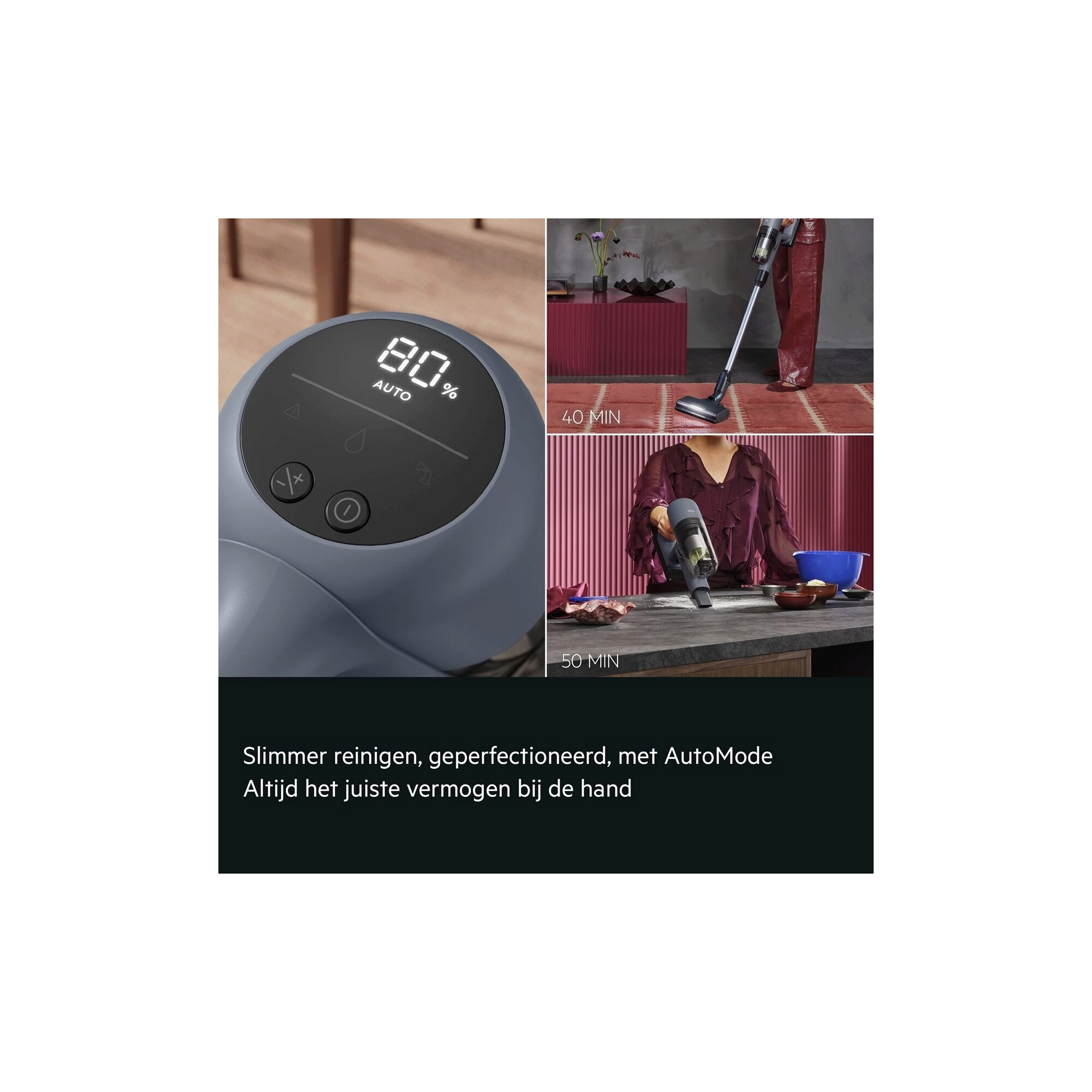 Slim en efficiënt reinigen van alle vloeren met Auto Mode. De sensor past de zuigkracht in real time aan voor optimale prestaties en een lange gebruiksduur*. Altijd de juiste kracht bij de hand. Reinig tot 40 minuten met de volledige stofzuiger**, tot 151 m²*** en tot 50 minuten met de handunit.**