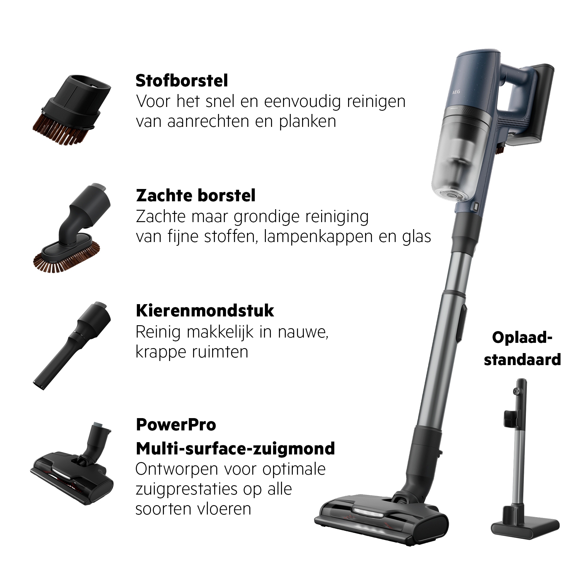 *Gemeten ten opzichte van de vorige 8000 steelstofzuiger met stofcontainer gevuld met DMT (standaard test) stof, volgens IEC 62885-4 ed.1