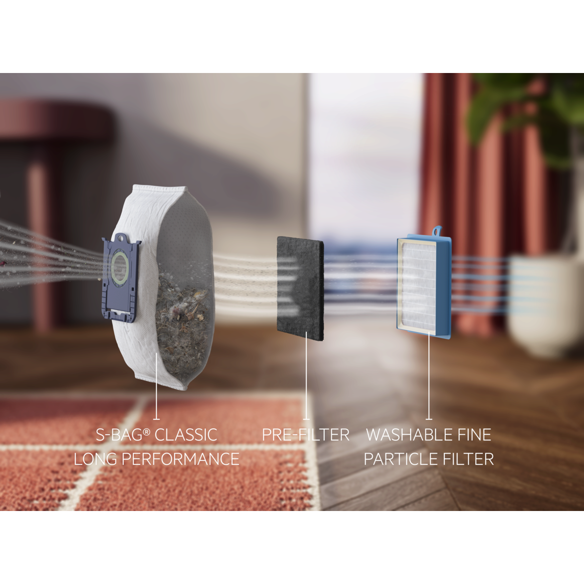 *Gebaseerd op interne tests op de filtratie van microstofdeeltjes met een grootte van 0,3-10 micron volgens standaard IEC 62885-2:2021, 5.14, met gebruik van standaard zand-/stofdeeltjes.