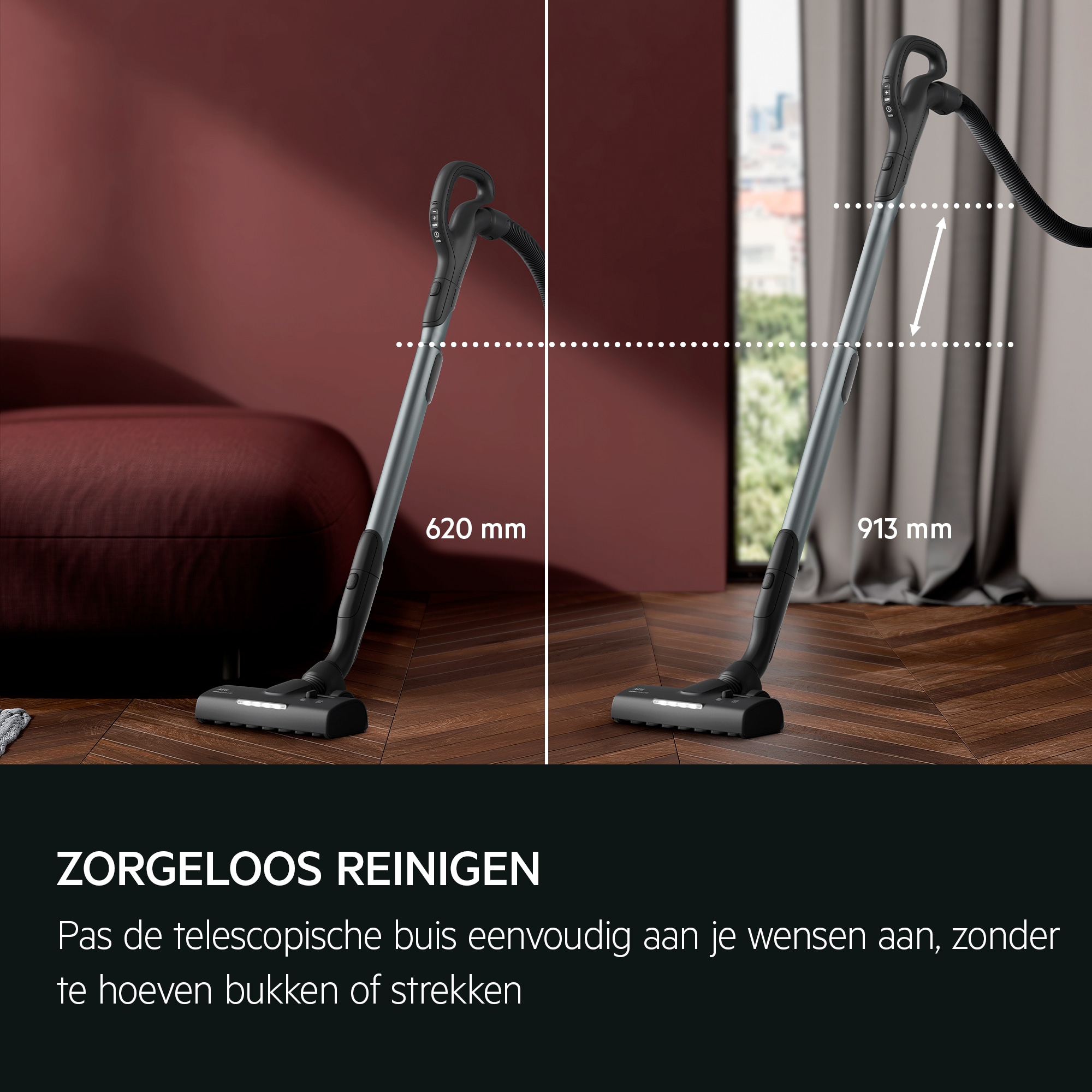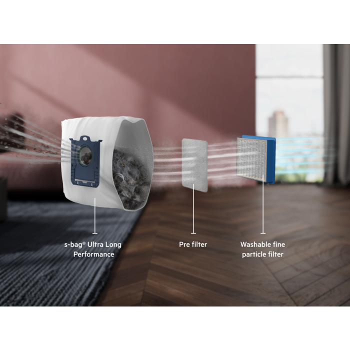 De stofzuiger biedt superieure stofopname – op alle oppervlakken. De stofzuiger past automatisch het zuigvermogen aan als je van de vloer naar het tapijt gaat. Met het AllFloor Auto LED-mondstuk, het digitale display en een lang snoer is het ook nog eens eenvoudig te gebruiken.