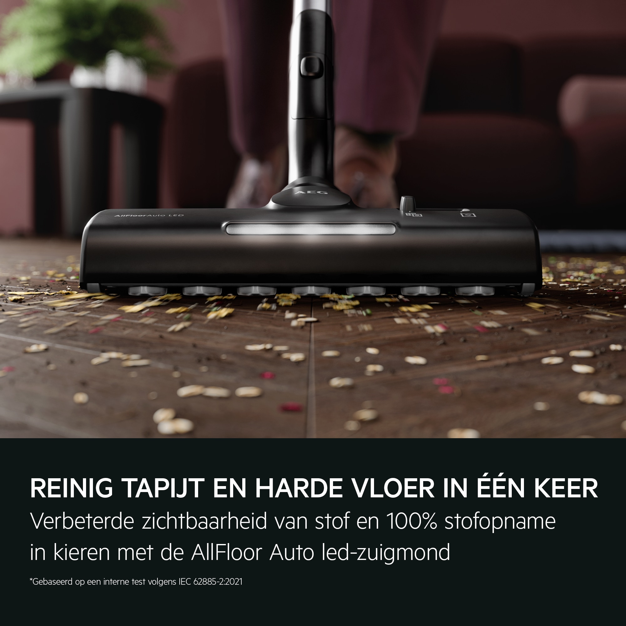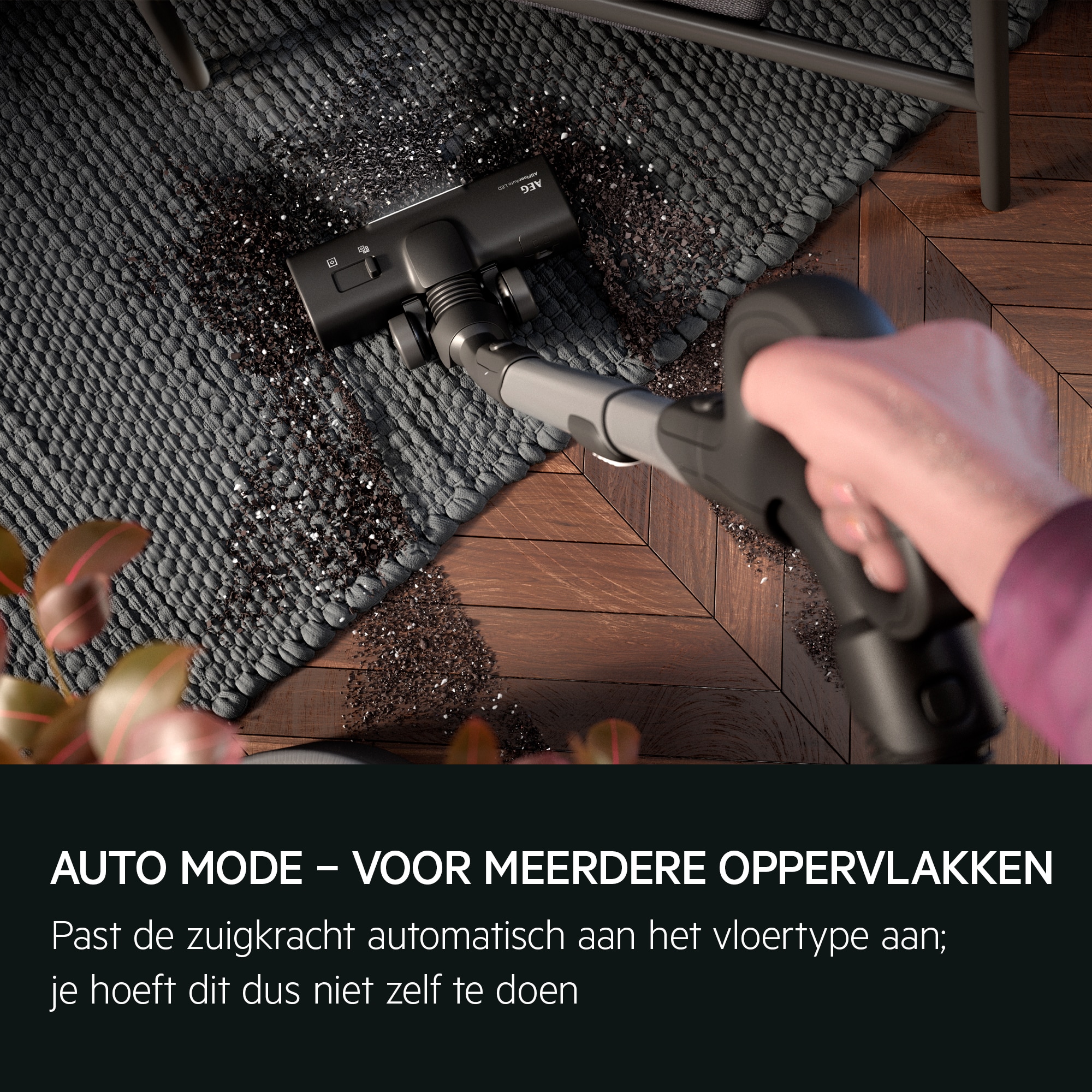 *Gebaseerd op interne tests volgens de norm IEC 62885-2, waarbij het energieverbruik bij gebruik van de maximum modus wordt vergeleken met de Auto-modus bij het reinigen van tapijt.