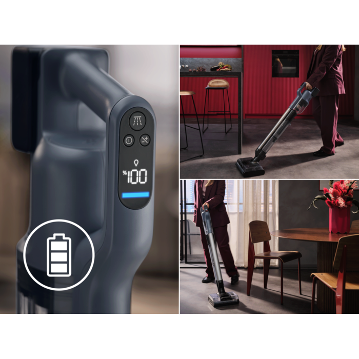 ***Runtime berekend via interne test volgens ASTM/IEC 62885-6. Bereik gemeten met interne teststandaard van Electrolux. Waterreservoir moet na 25 minuten worden bijgevuld.