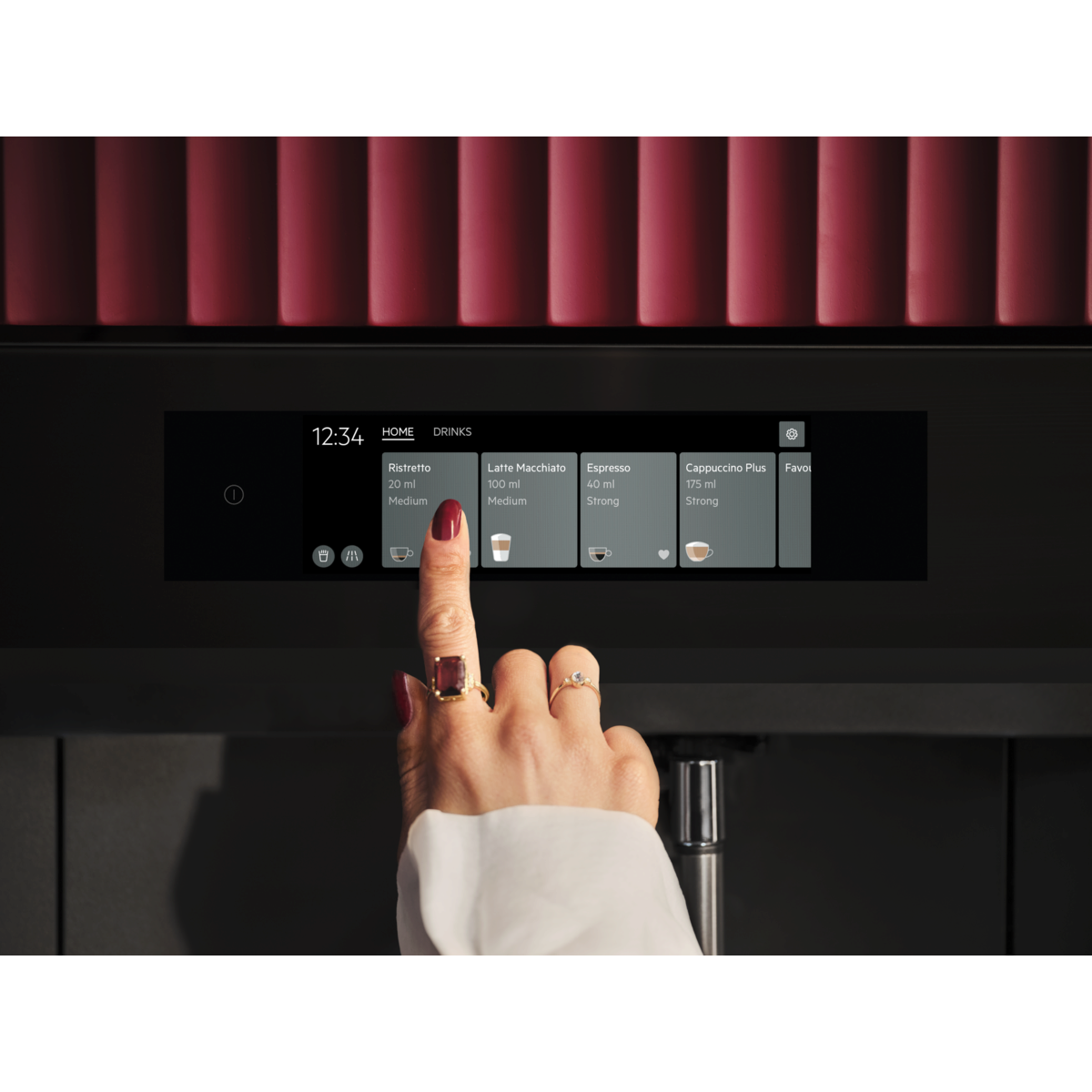 Ingebouwde espressobar met extra brede aanraakbediening voor efficiënte navigatie. Bereid en geniet van koffie, espresso en andere warme dranken – precies zoals jij ze thuis het liefst drinkt.