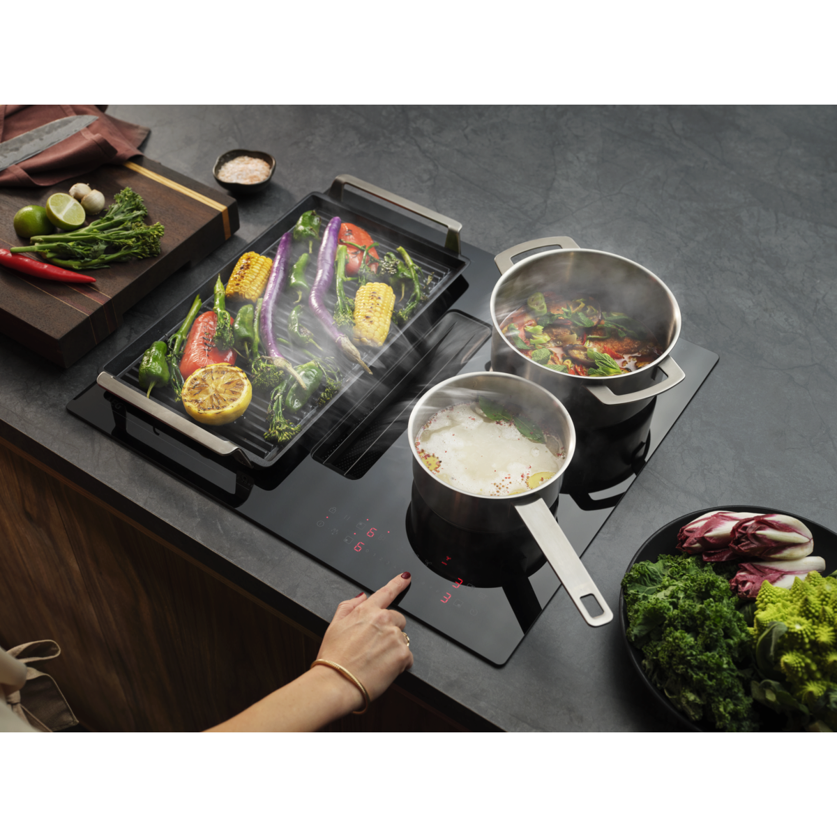 Kookveldinductie met afzuiging