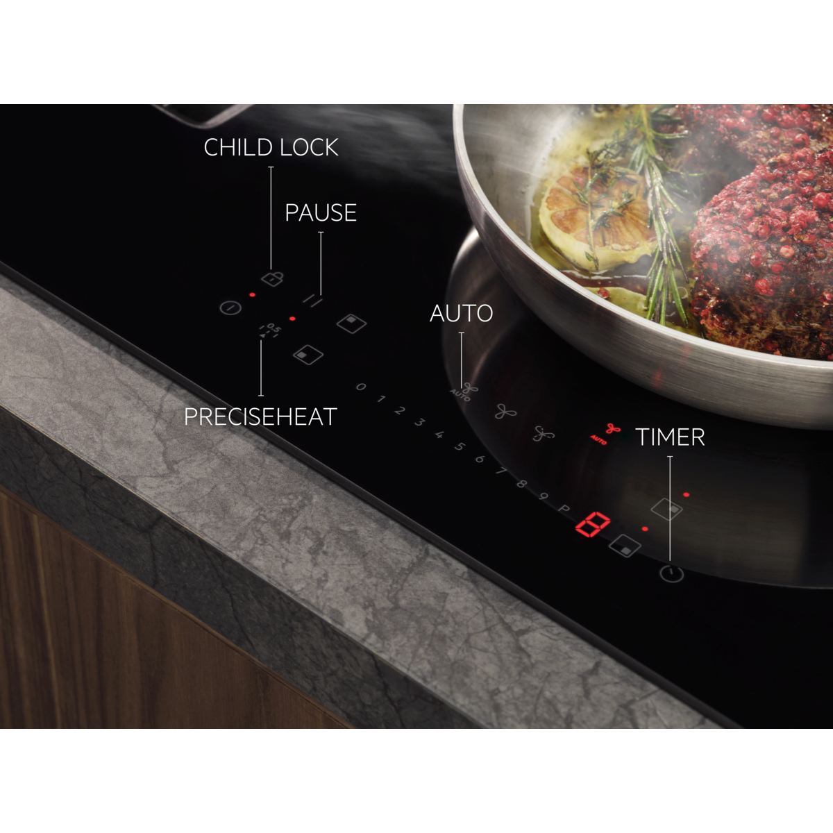 Automatische regeling van de afzuiging. Past zich aan terwijl je kookt