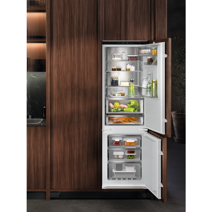 De AEG EcoLine koel-vriescombinaties zijn onze meest energiezuinige modellen. Ze hebben een unieke binnenbekleding van gerecycled kunststof en een bedieningspaneel dat niet alleen leidt naar energiezuinigere instellingen, maar ook helpt voedselverspilling te verminderen.*