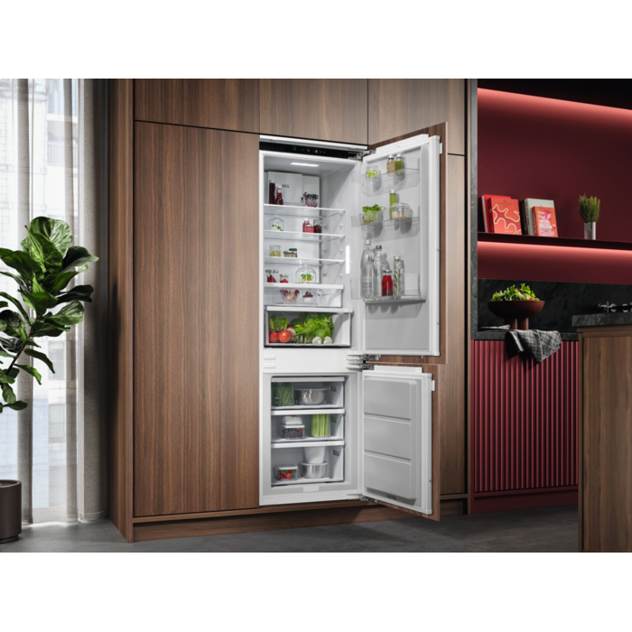 De AEG EcoLine koel-vriescombinaties zijn onze meest energiezuinige modellen. Ze hebben een unieke binnenbekleding van gerecycled kunststof en een bedieningspaneel dat niet alleen leidt naar energiezuinigere instellingen, maar ook helpt voedselverspilling te verminderen.*