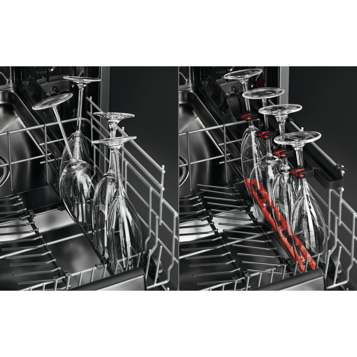 Het GlassCare-systeem in de vaatwasser van AEG biedt de beste zorg voor glaswerk gedurende het gehele wasproces. De unieke SoftGrip-functie houdt de steel en de voet van ieder glas behoedzaam maar stevig op haar plaats tijdens de volledige duur van het programma.