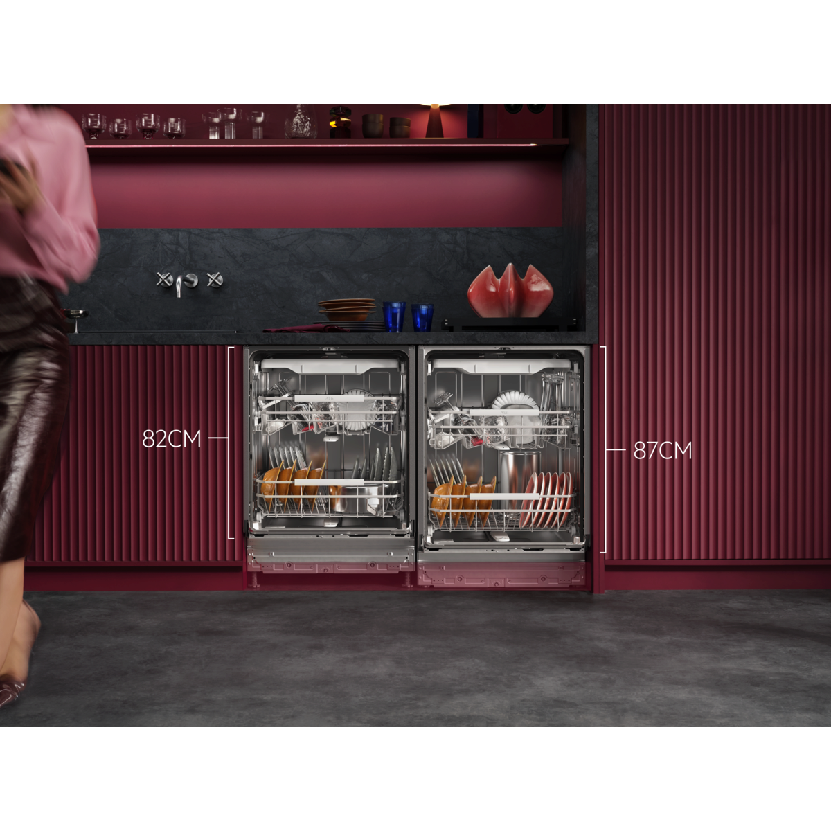 7000 XXL: 5 cm meer binnenruimte en past toch onder een standaard aanrecht. Efficiënt en effectief reinigen, met een opnieuw ontworpen watersysteem dat slechts 8,4 liter water verbruikt. Ruime, verstelbare korven met opklapbare delen voor eenvoudig laden.