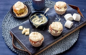 6 Leg de laatste 5 minuten een marshmallow op ieder cupcakeje zodat deze over de cupcake heen smelt.